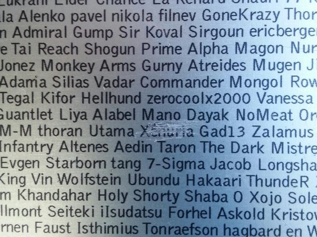 Być może pomnik nie został pomalowany puszkami z farbą i nie otagowano go kilkuliterowymi hasłami wyrażającymi stosunek danego człowieka do policji czy klubu piłkarskiego, ale „ozdobiono” go wizerunkiem pszczoły. To jednak nie koniec, gdyż niejaki Gaius Homerson postanowił wyrazić swoją niechęć do gracza o ksywce Xenuria, skreślając jego nick z listy osób znajdującej się na betonowej podstawie. Całość uwiecznił zdjęciem i opublikował w serwisie społecznościowym Twitter. W ten oto sposób ciekawa i minimalistyczna konstrukcja powoli zaczyna tracić swój pierwotny blask. Szkoda jedynie, że w proceder zaangażowany jest także gracz EVE Online, który „wykreślił” innego zawodnika z listy.