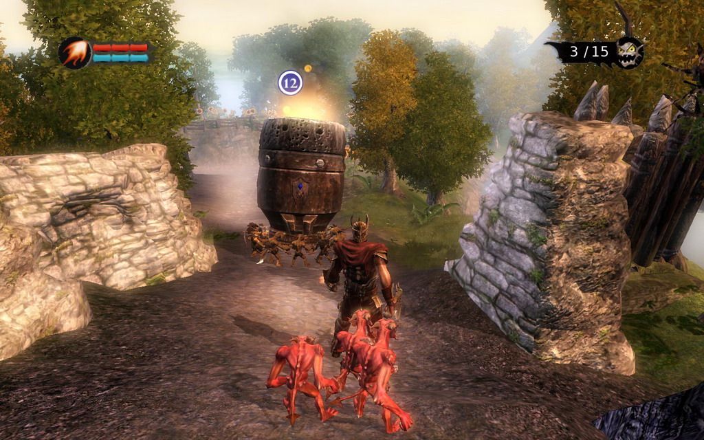 W tym momencie gracz przejmuje peÅ‚nÄ… kontrolÄ™ nad Overlordem. Naszego bohatera o wÄ…tpliwej reputacji obserwujemy zza pleców, jak na typowÄ… grÄ™ TPP przystaÅ‚o. Na poczÄ…tku mamy trening, podczas którego stary chochlik-mÄ™drzec wyjaÅ›nia tajniki sterowania i możliwoÅ›ci postaci. ZresztÄ… kilka pierwszych zadaÅ„, opierajÄ…cych siÄ™ na odbudowie zrujnowanej wieży (bÄ™dÄ…cej zarazem bazÄ… wypadowÄ…, o której szerzej jeszcze wspomnÄ™) można potraktować jako dÅ‚ugi, acz przyjemny samouczek. Gdy już siÄ™ go ukoÅ„czy, można by odnieść wrażenie, że gra jest strasznie prosta i maÅ‚o skomplikowana. Nasz bohater opisany jest zaledwie dwoma współczynnikami – życiem i manÄ…. W dodatku w grze nie ma czegoÅ› takiego jak inwentarz, doÅ›wiadczenie, zróżnicowany system walki, kupcy, umiejÄ™tnoÅ›ci, poziomy postaci i tym podobne rzeczy, które charakteryzujÄ… każdego szanujÄ…cego siÄ™ RPG-a. Overlord może zaledwie wykonać jeden typ ataku, użyć jednego z kilku czarów i to wÅ‚aÅ›ciwie wszystko. Z przedmiotów mamy dostÄ™pne jedynie trzy rodzaje pancerza, broni i heÅ‚mów, zÅ‚oto oraz eliksiry, których nie można nawet zabrać ze sobÄ… w drogÄ™. Do tego trzeba dodać, że gra jest dość liniowa, pomimo faktu, iż sÄ… w niej także zadania poboczne.