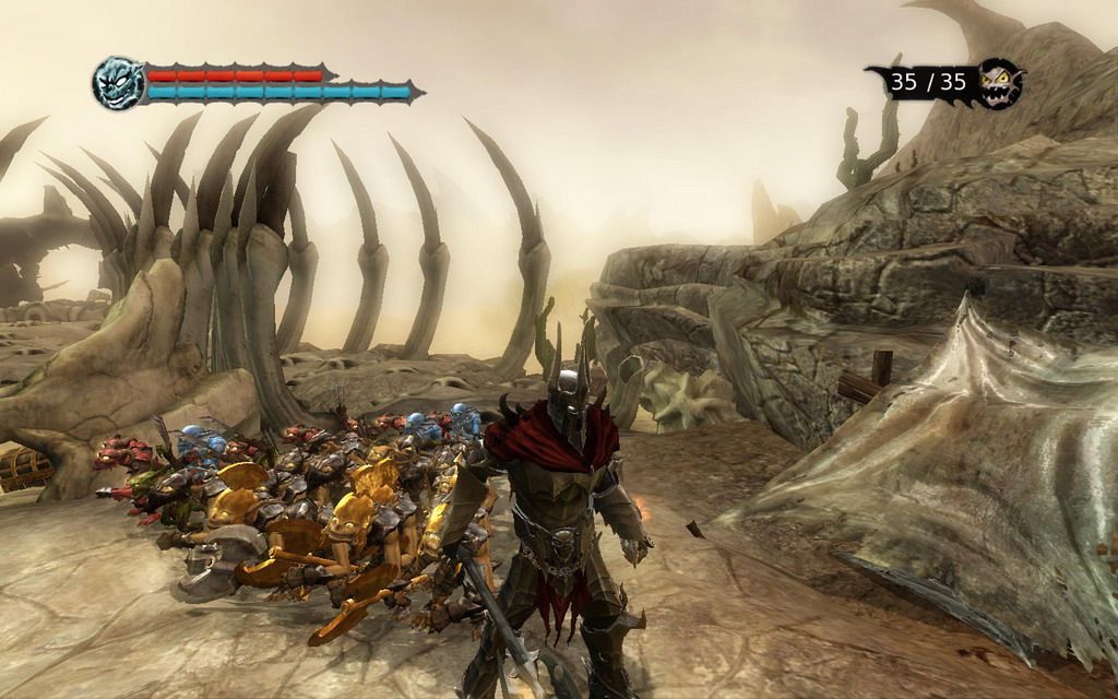 Overlorda można dojść do takiej przewrotnej tezy, że nasz główny bohater wcale nie gra tutaj roli przysÅ‚owiowych pierwszych skrzypiec. Całą czarnÄ… robotÄ™ odwalajÄ… bowiem za niego pomocnicy. Chochliki/gremliny/diabliki (jak zwaÅ‚, tak zwaÅ‚), czyli te maÅ‚e i gÅ‚upie pokurcze stanowiÄ… główny element gry i Å›wiadczÄ… o jej absolutnej unikalnoÅ›ci. Overlord mimo swej caÅ‚ej potÄ™gi nigdy nie powinien podróżować sam. Za nim, jak cieÅ„, powinna podążać jak najliczniejsza grupa sÅ‚ugusów, którzy w razie czego skoczÄ… za niego w ogieÅ„ (i to wcale nie jest przenoÅ›niÄ…). Na poczÄ…tku mamy okreÅ›lony odgórnie niewielki limit dostÄ™pnych chochlików, w dodatku tylko jednego typu. Z czasem, wraz z postÄ™pami w grze ogólny limit bÄ™dzie siÄ™ zwiÄ™kszaÅ‚, a do naszej dyspozycji bÄ™dzie oddanych aż cztery ich rodzaje. Chochliki przywoÅ‚ujemy wykorzystujÄ…c do tego celu specjalne portale-ogniska. Aby jednak go przywoÅ‚ać potrzeba okreÅ›lonego rodzaju duszy, w zależnoÅ›ci jaki typ sÅ‚ugi ma siÄ™ pojawić. Dusze zbieramy z pokonanych przeciwników bÄ…dź gdy zechcemy odesÅ‚ać z powrotem chochlika do portalu. Schemat jest wiÄ™c prosty – tworzysz chochliki, aby przy ich pomocy zabić przeciwników, po których wypadnie wiÄ™cej dusz, umożliwiajÄ…cych przywoÅ‚anie nowych podopiecznych.